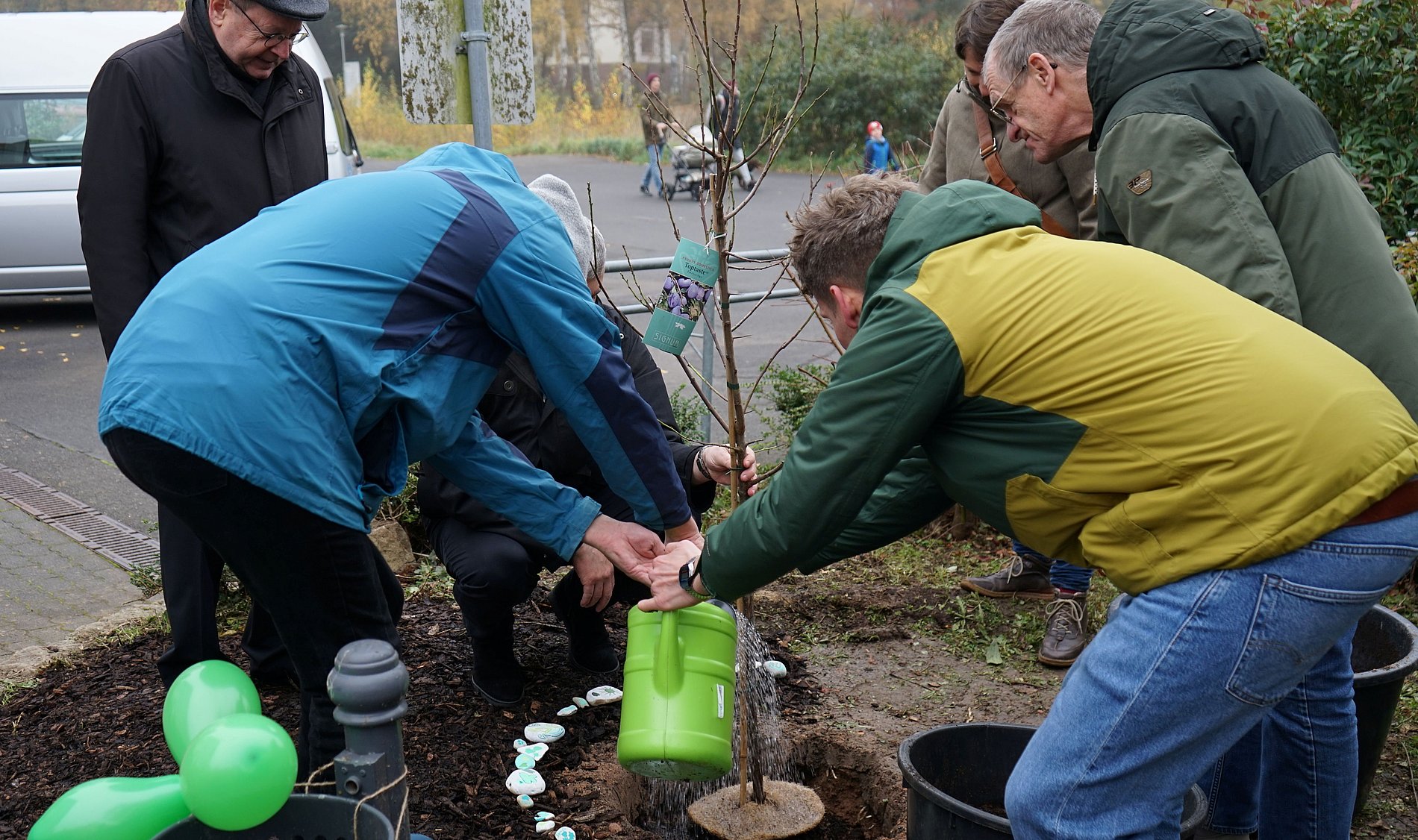Tatkräftig in den Tag gestartet war die Region mit den Bewohnerinnen und Bewohnern des Rudolph-Ehlers-Hauses im Kalmenhof: als Zeichen der Hoffnung wurde dort ein Pflaumenbaum gepflanzt. Nachdem Bereichsleiter Lukas Kern die Gäste aus der Region und dem Bistum begrüßt und Outdoorseelsorgerin Anke Jarzina und Katharina Berger von der Jugendkirche KANA einen Impuls zum Thema Hoffnung gesetzt hatten, segnete der Limburger Bischof das Bäumchen, das er im Anschluss mit den Bewohnern und den Regionalsynodalräten einpflanzte.