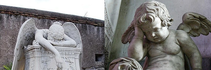 (Das Bild oben ist eine Collage aus dem Engel der Trauer (rechts aus Rom in Italien) und dem Weinenden Engel (links aus Amiens in Frankreich). Die verwendeten Bilder stammen von Wikicommons: Weeping_angel vom Nutzer Nastytroll und Rome_WWStory_angel_in_grief von Raja Patnaik und Alessio Damato. Beide Bilder stehen unter der Creative Commons Lizenz CC-BY-SA 3.0 womit auch eine Collage daraus unter dieser Lizenz steht)