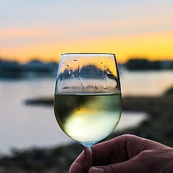 und einem Glas Wein