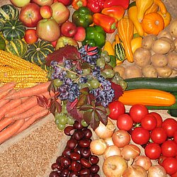 Mitgebrachte Erntegaben werden im Gottesdienst gesegnet.